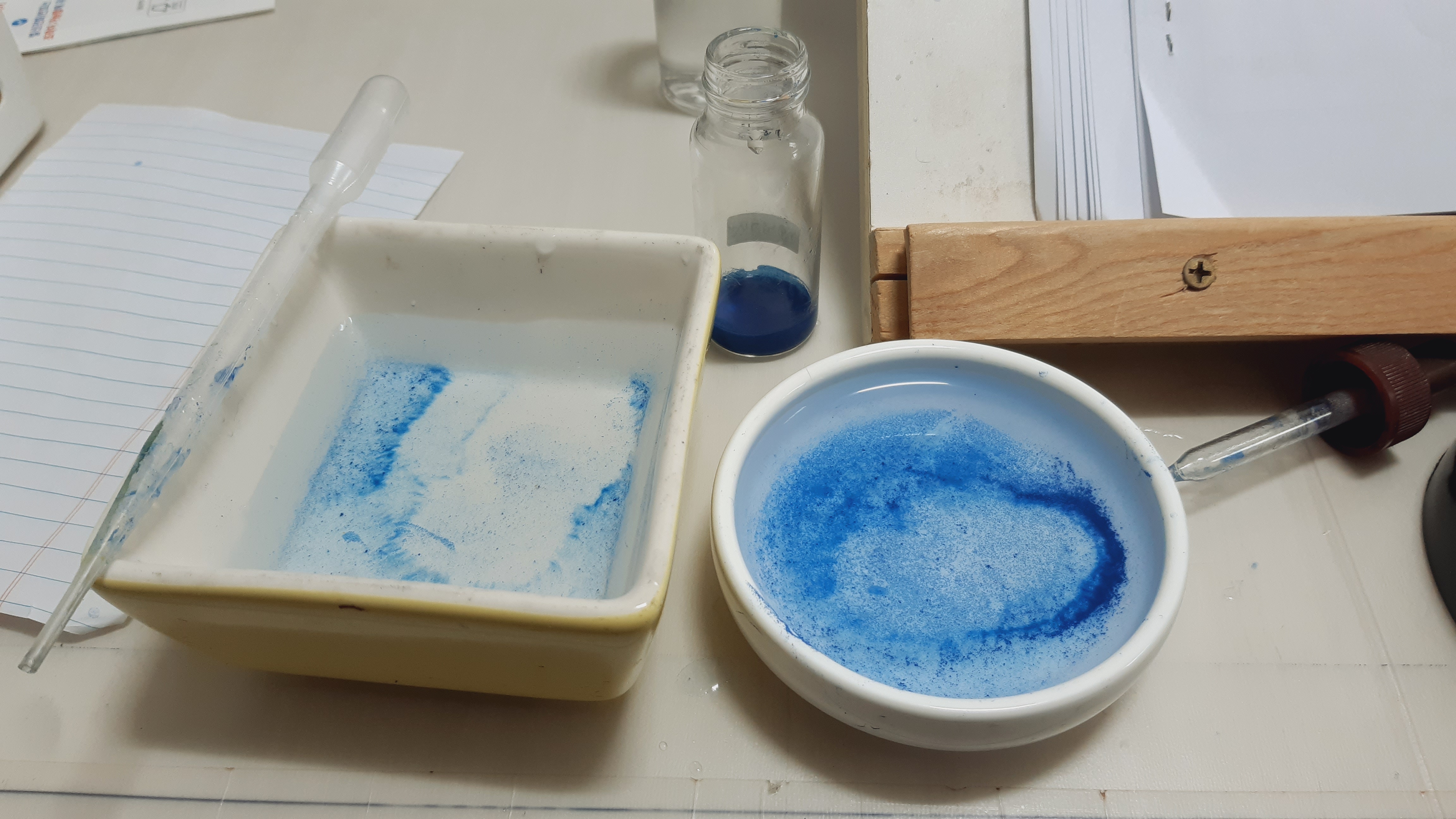 물을 스포이드로 덜어내고 말렸는데