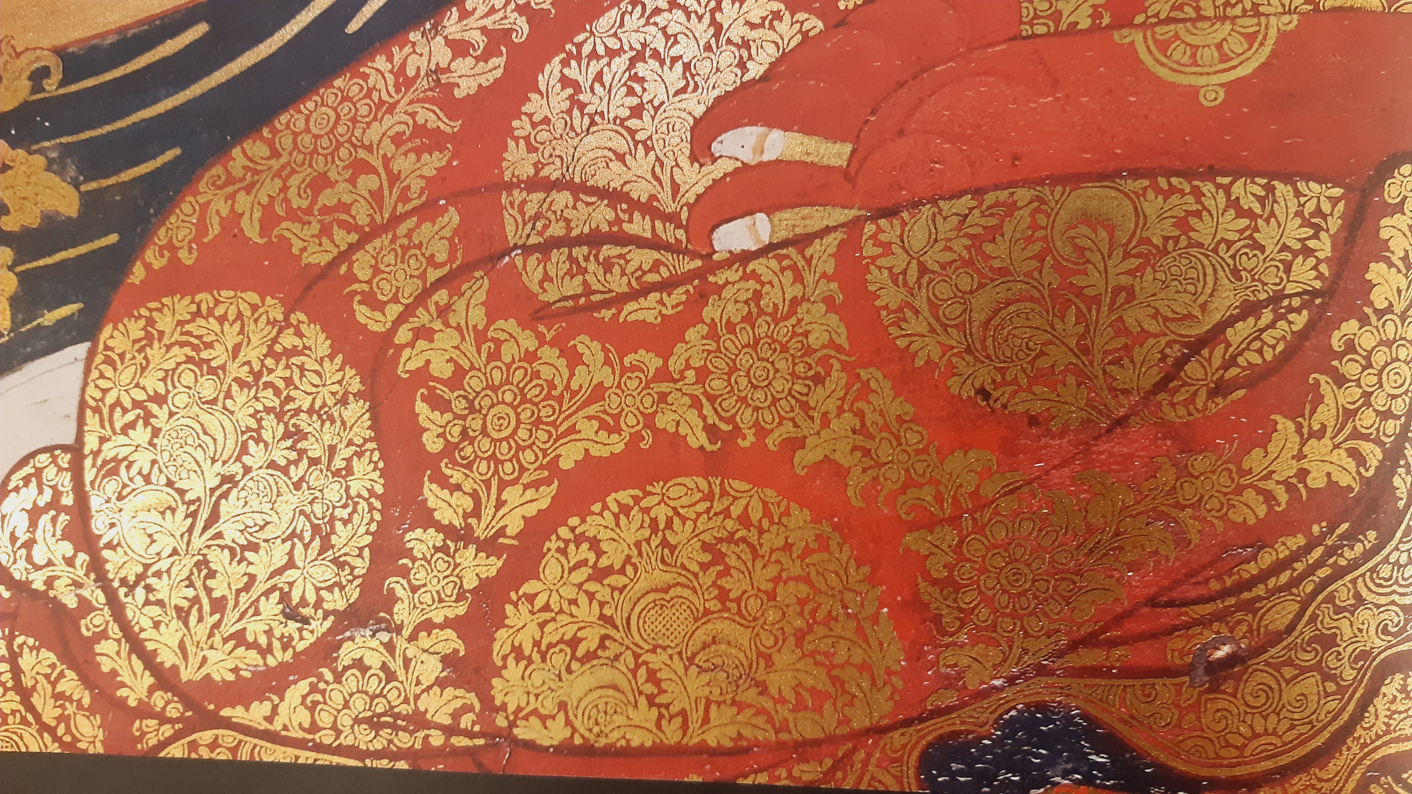 고려불화의 금 문양과 다른 금 문양이 많이 그려져 있습니다.