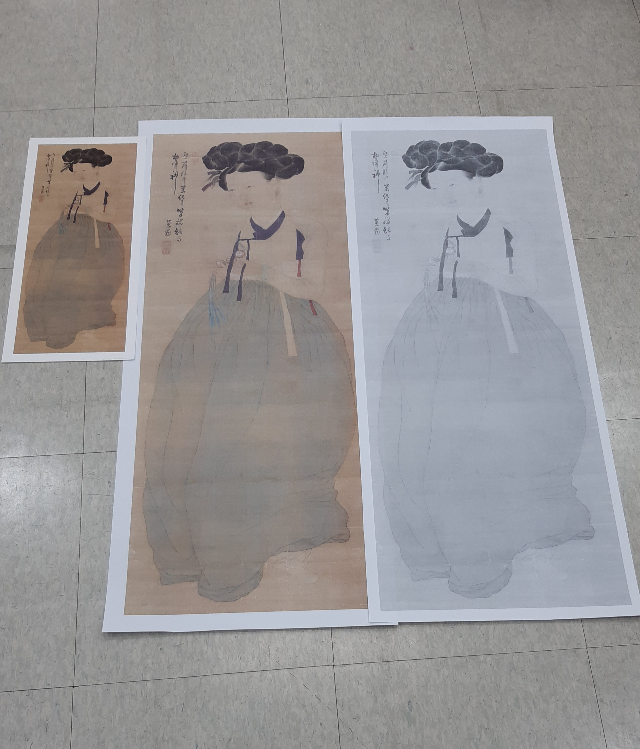 미인도 전신을 그리기 위해, 지난번 대구 간송미술관 전시에서 구입한 영인본을 원화크기로 확대 복사합니다.