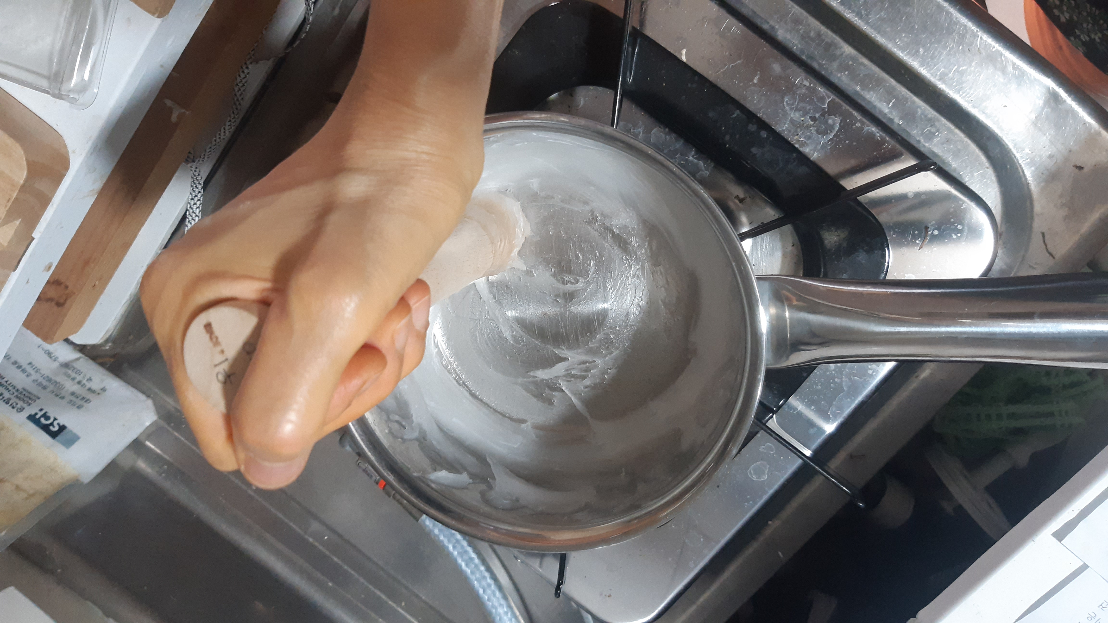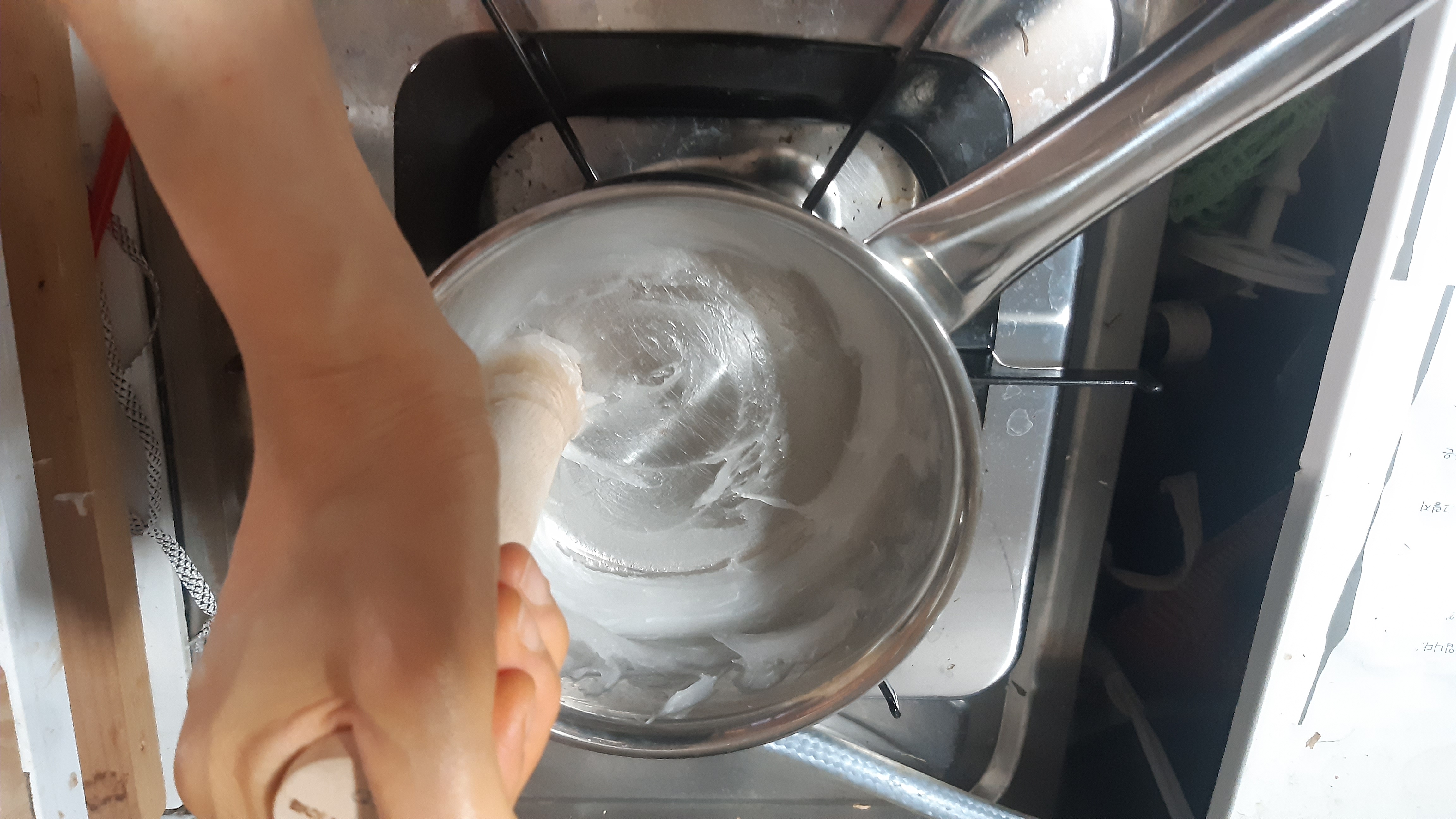 3중바닥 스텐냄비에 풀을 쑤어보았습니다.