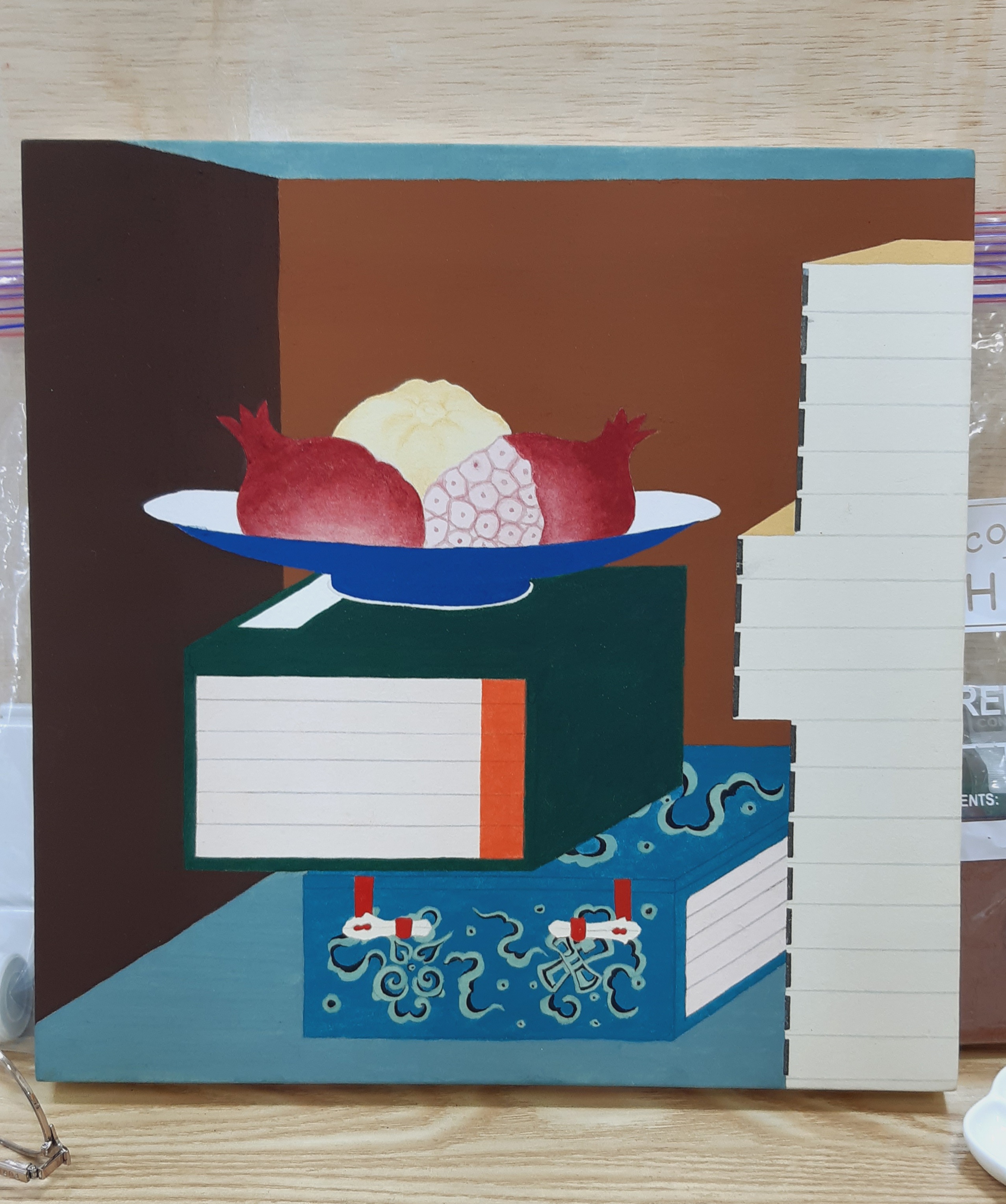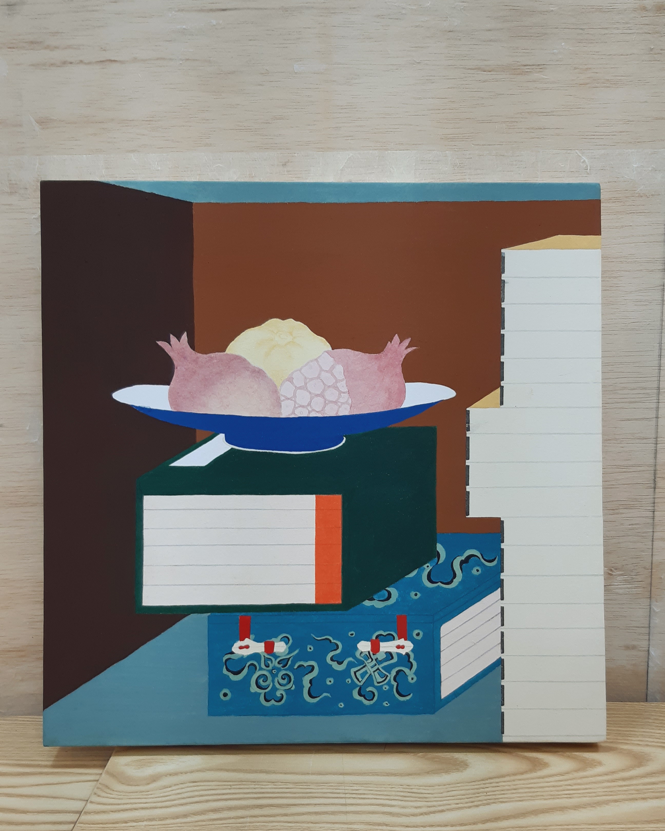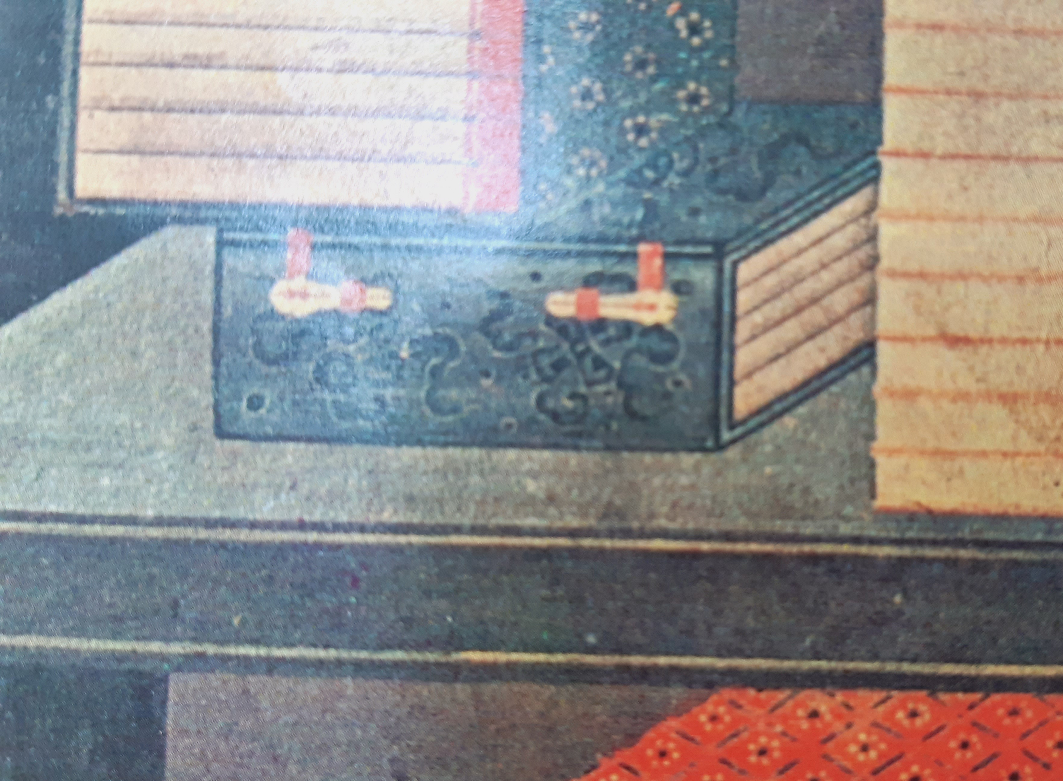 책장 책가도는 채색이 두껍게 올라가기 때문에,