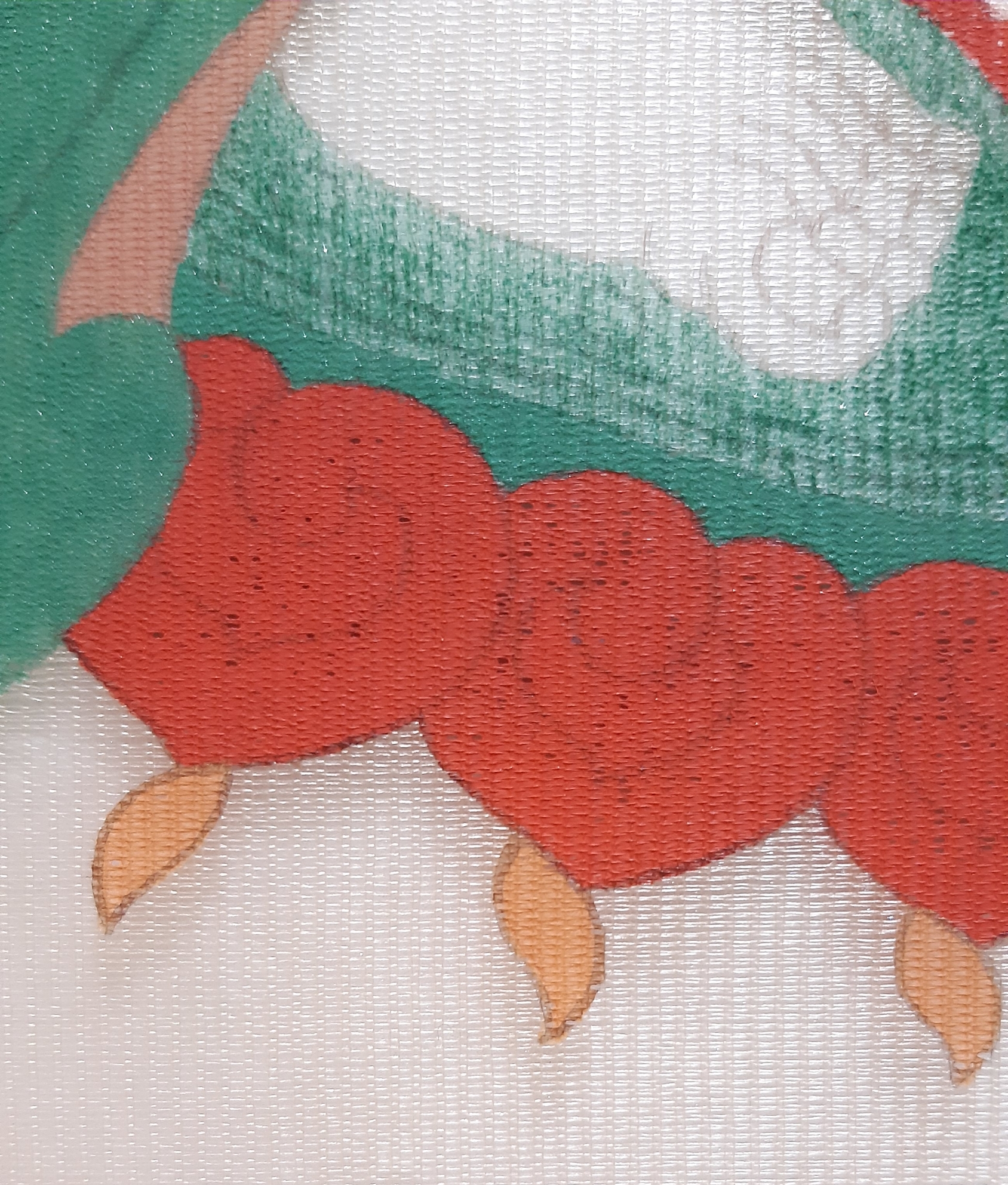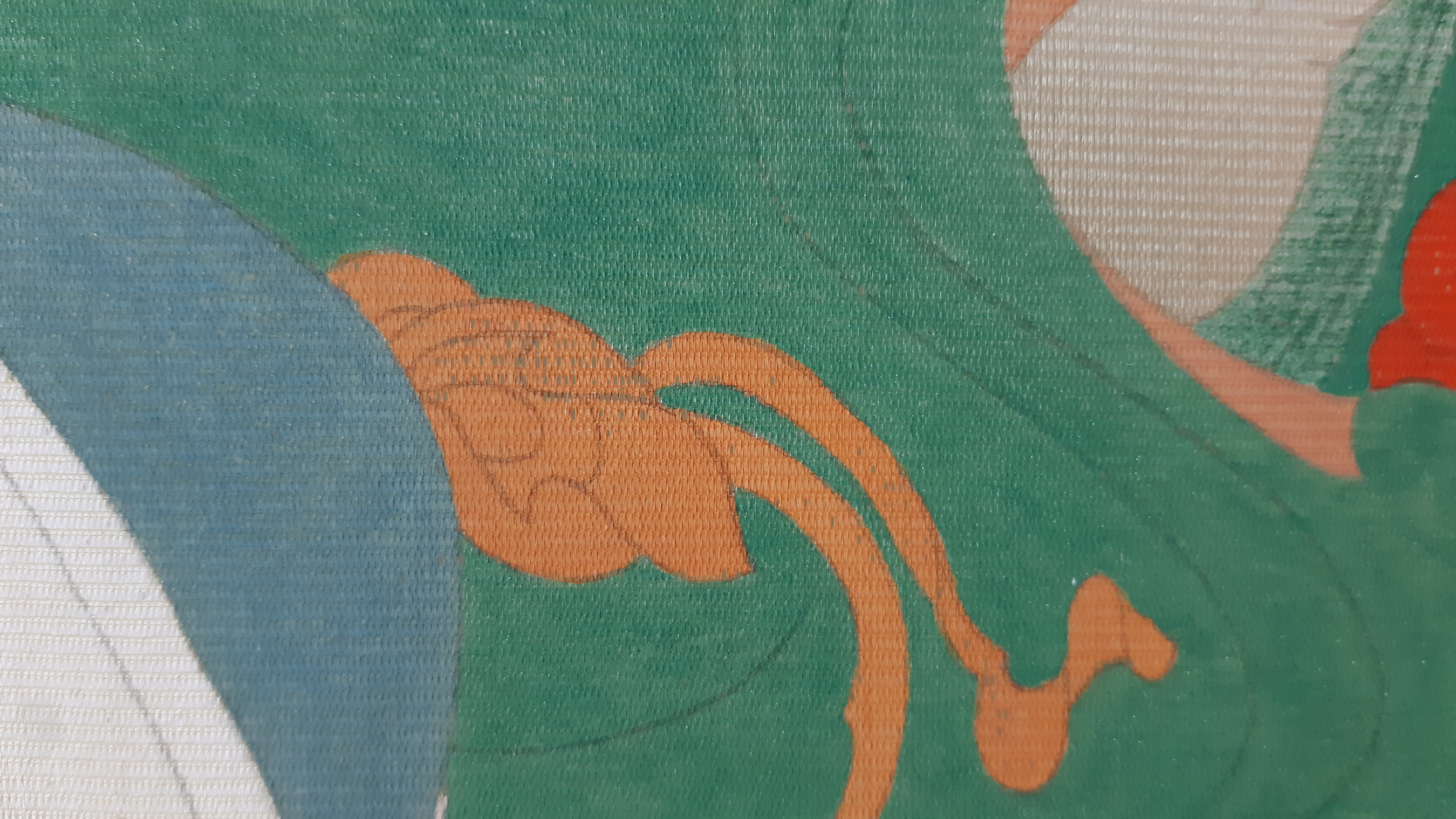 아래 사진은 석채 채색 후에도 비단이 교반수로 잘 막혀 있는 모습 입니다.