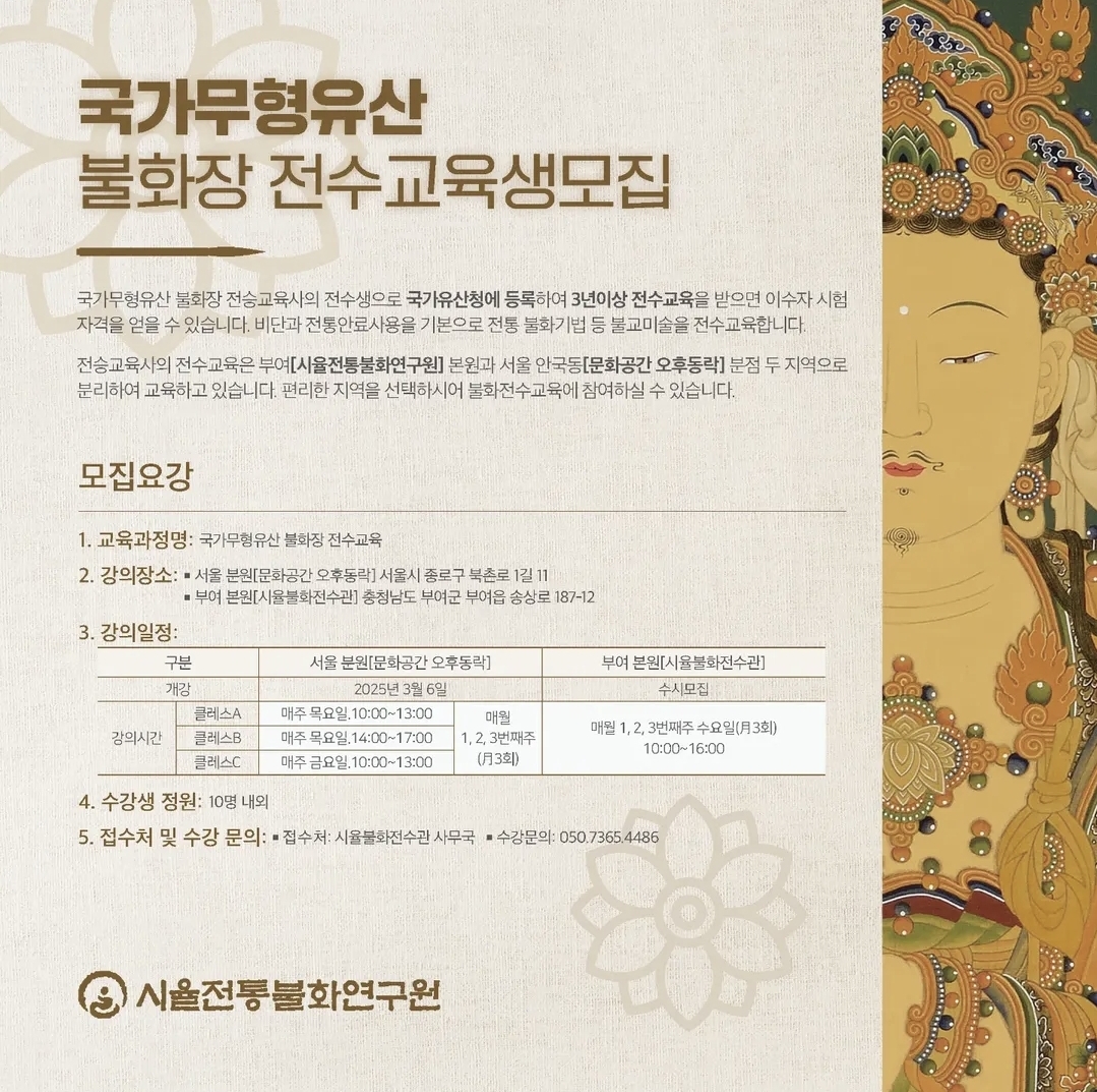 | [전수교육] 조선불화 비단에 그리는 백의관음도 6 완성 (2) | 2025.10.21 |