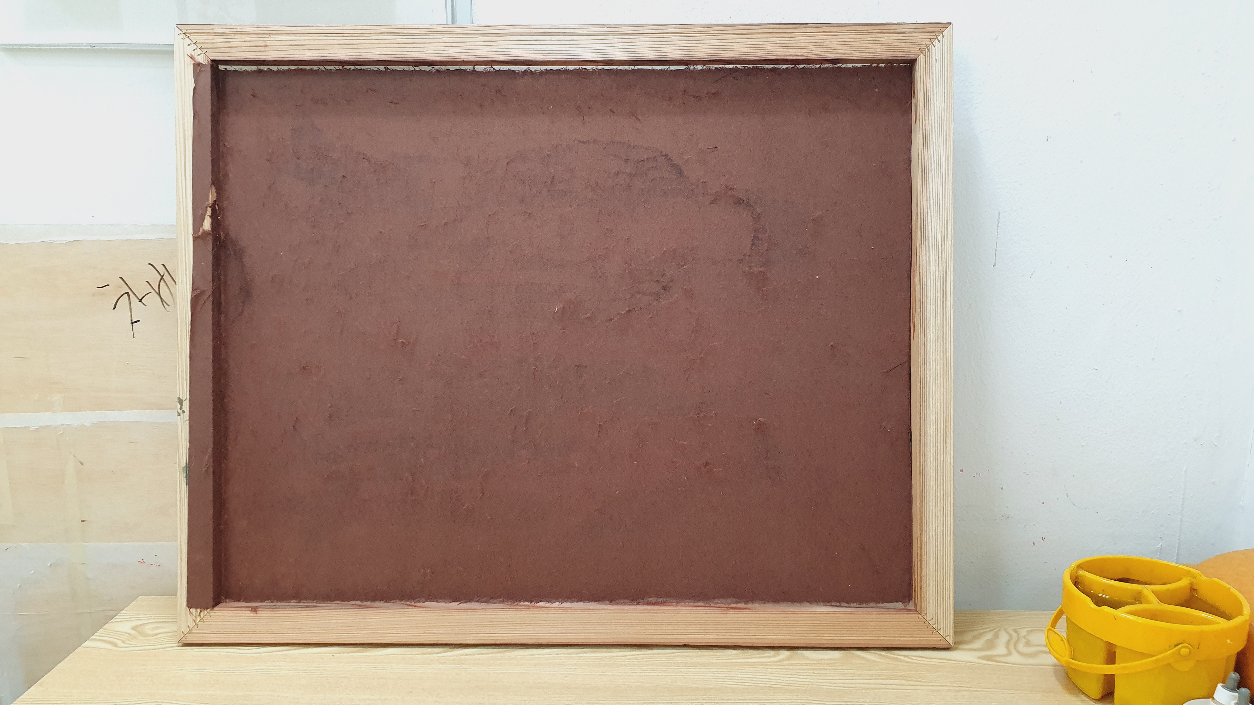 바탕색을 배채 하거나 앞에서 칠하지 않은 상태에서 배접을 하면, 앞면에 반드시 풀솔질 자욱이 납니다.