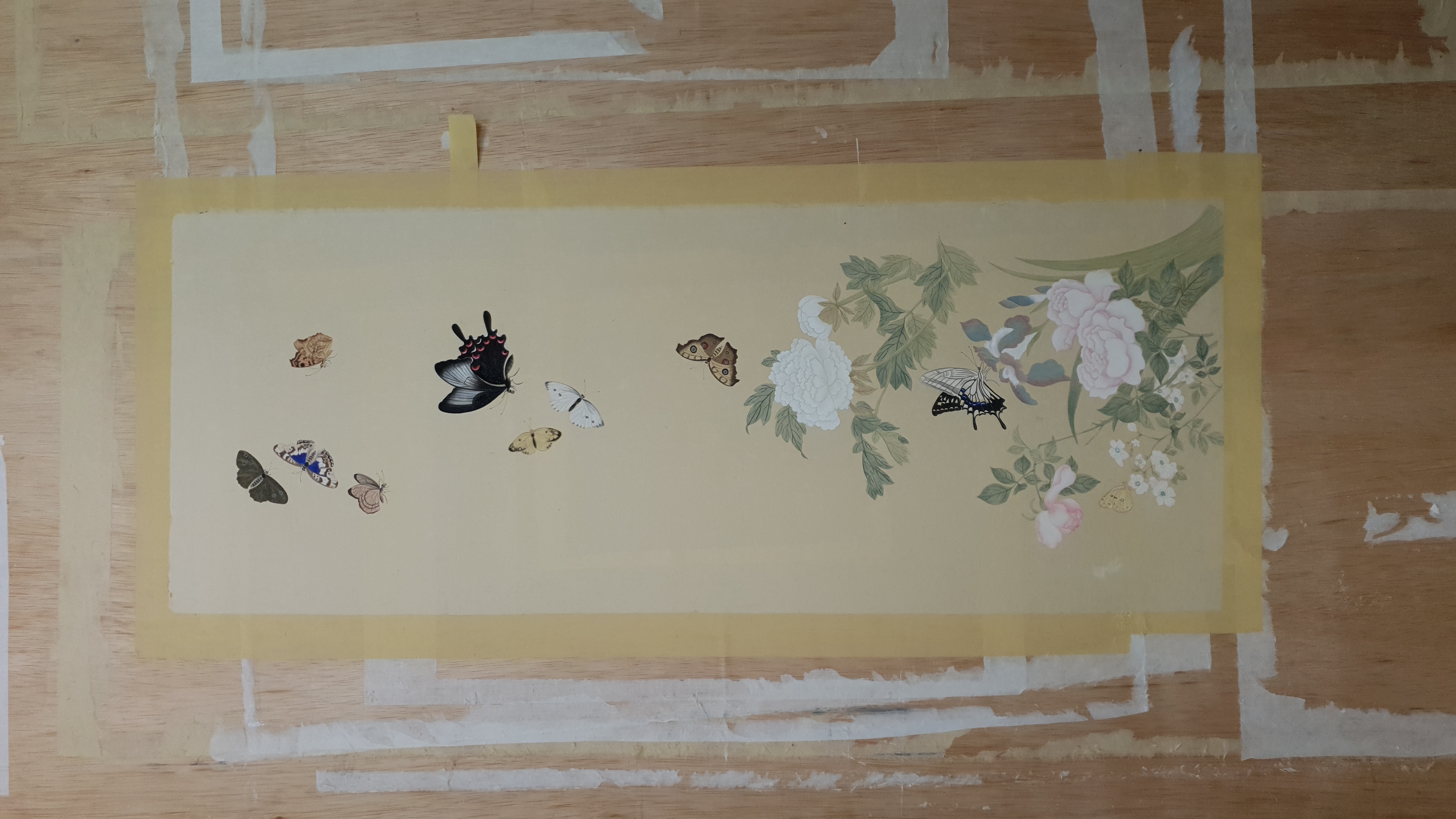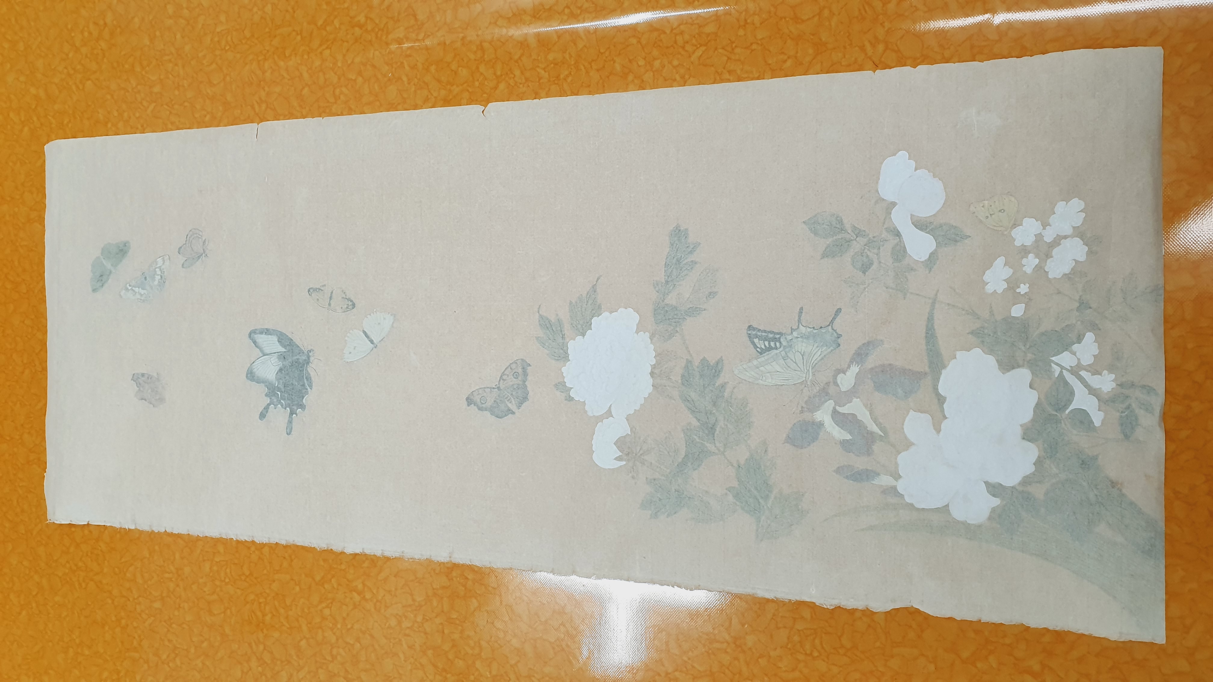 꽃과 나비 는 순지 그림이고, 색한지로 배접 하였습니다.