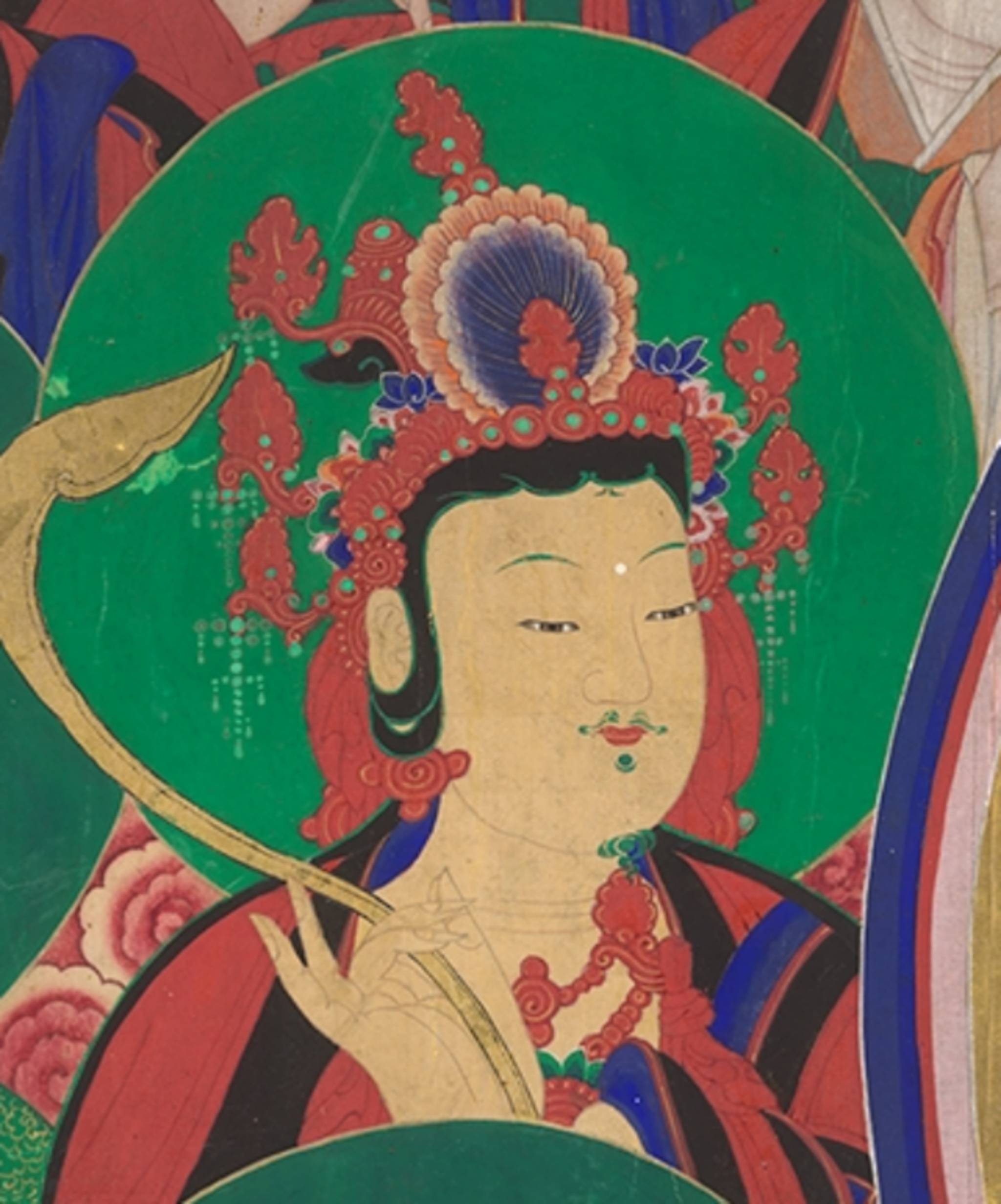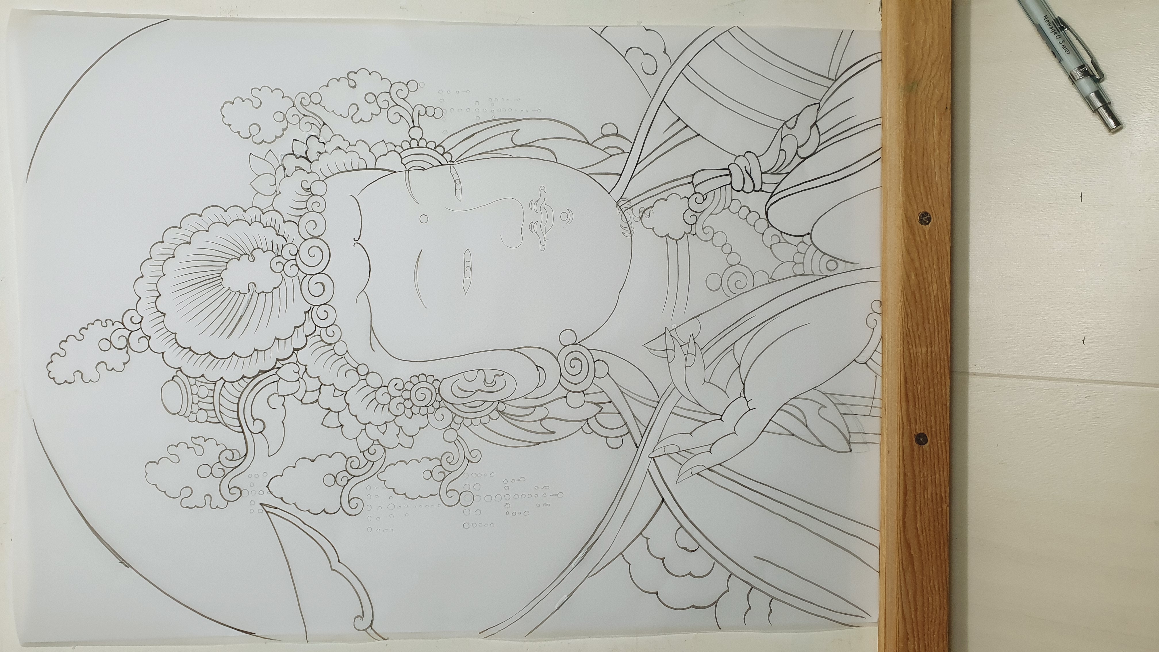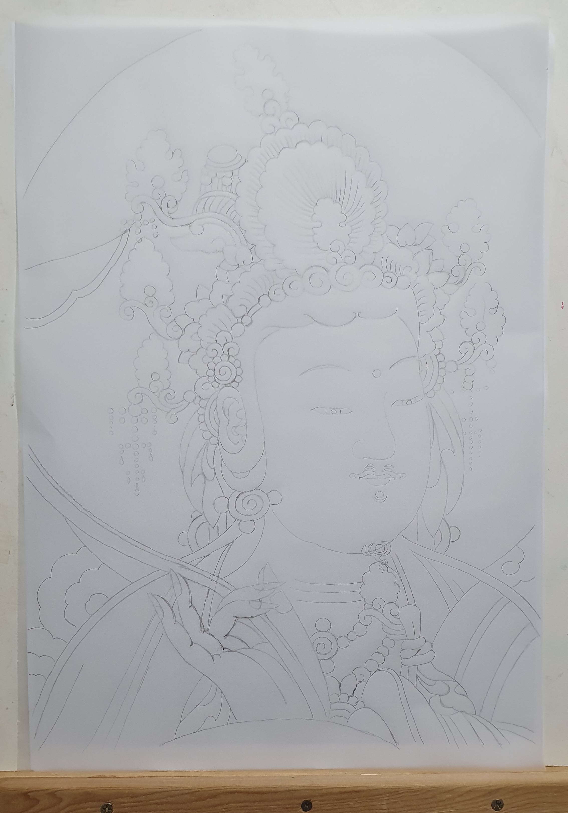 보살상의 두광이 잘라져서 보기가 좋지 않으므로 원형 두광이 다 나오도록 그리기로 하였습니다.