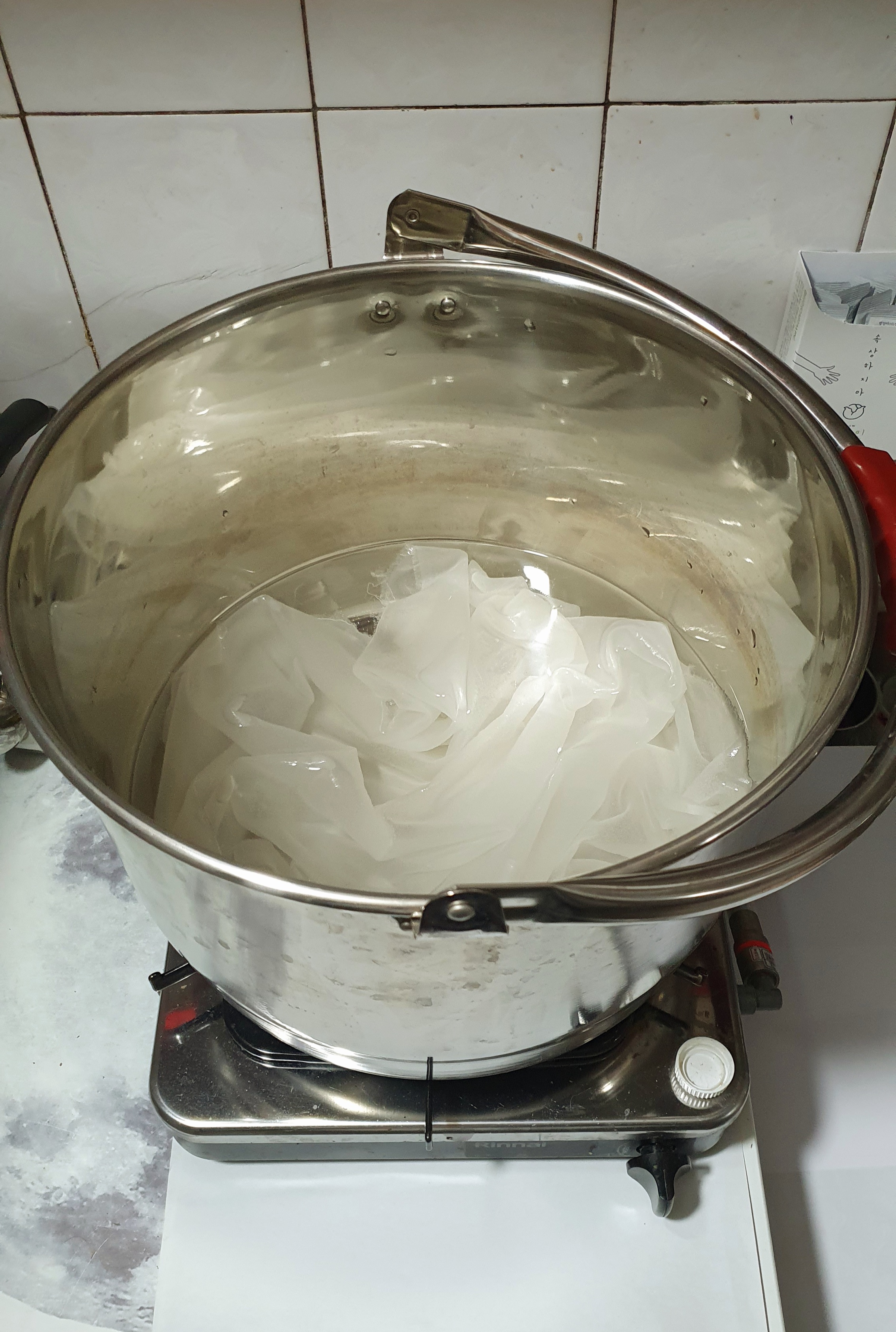 새 물을 받아 끓여서 다시 담급니다.