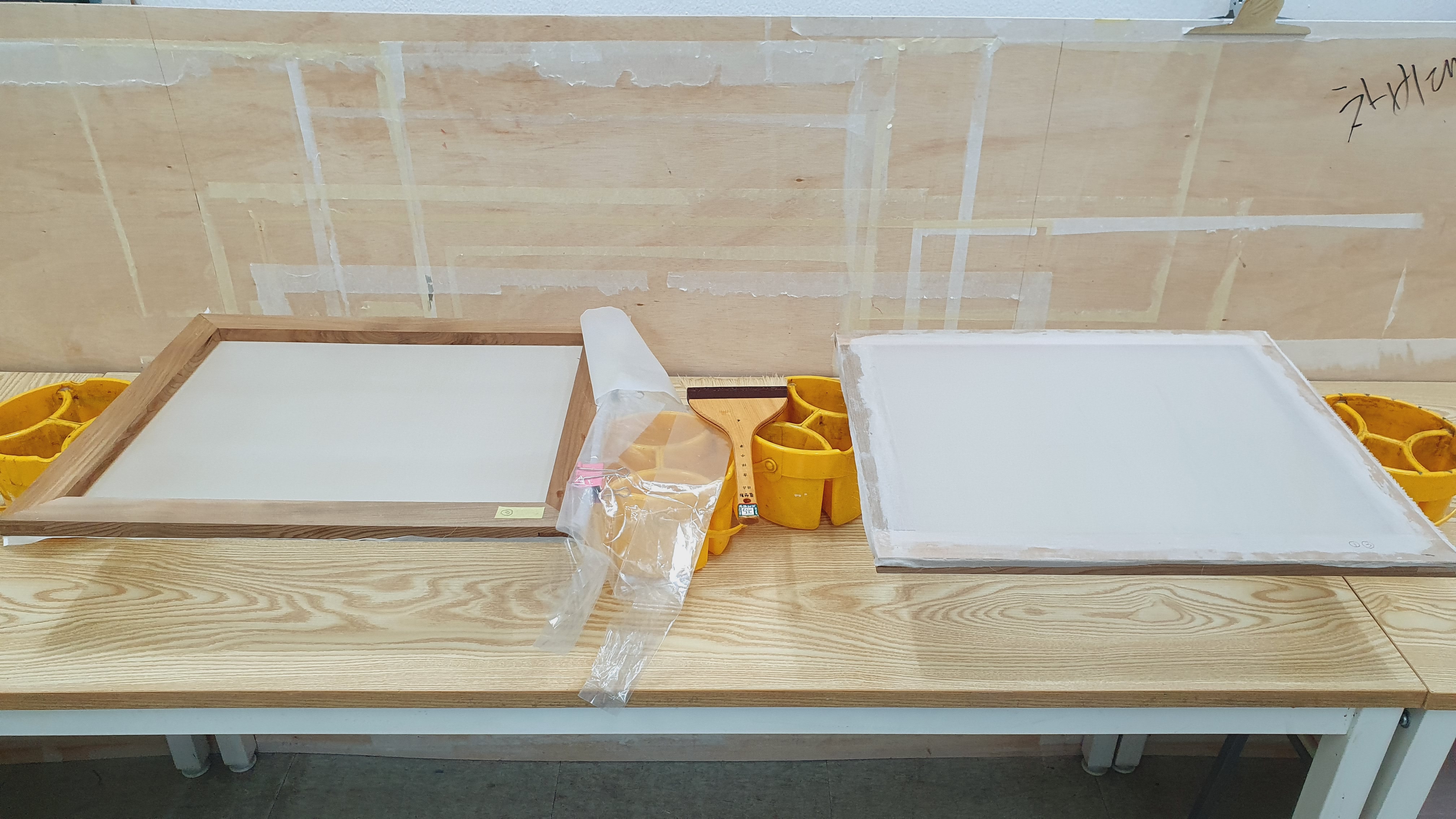 2회차 뒷면에 교반수를 칠합니다.