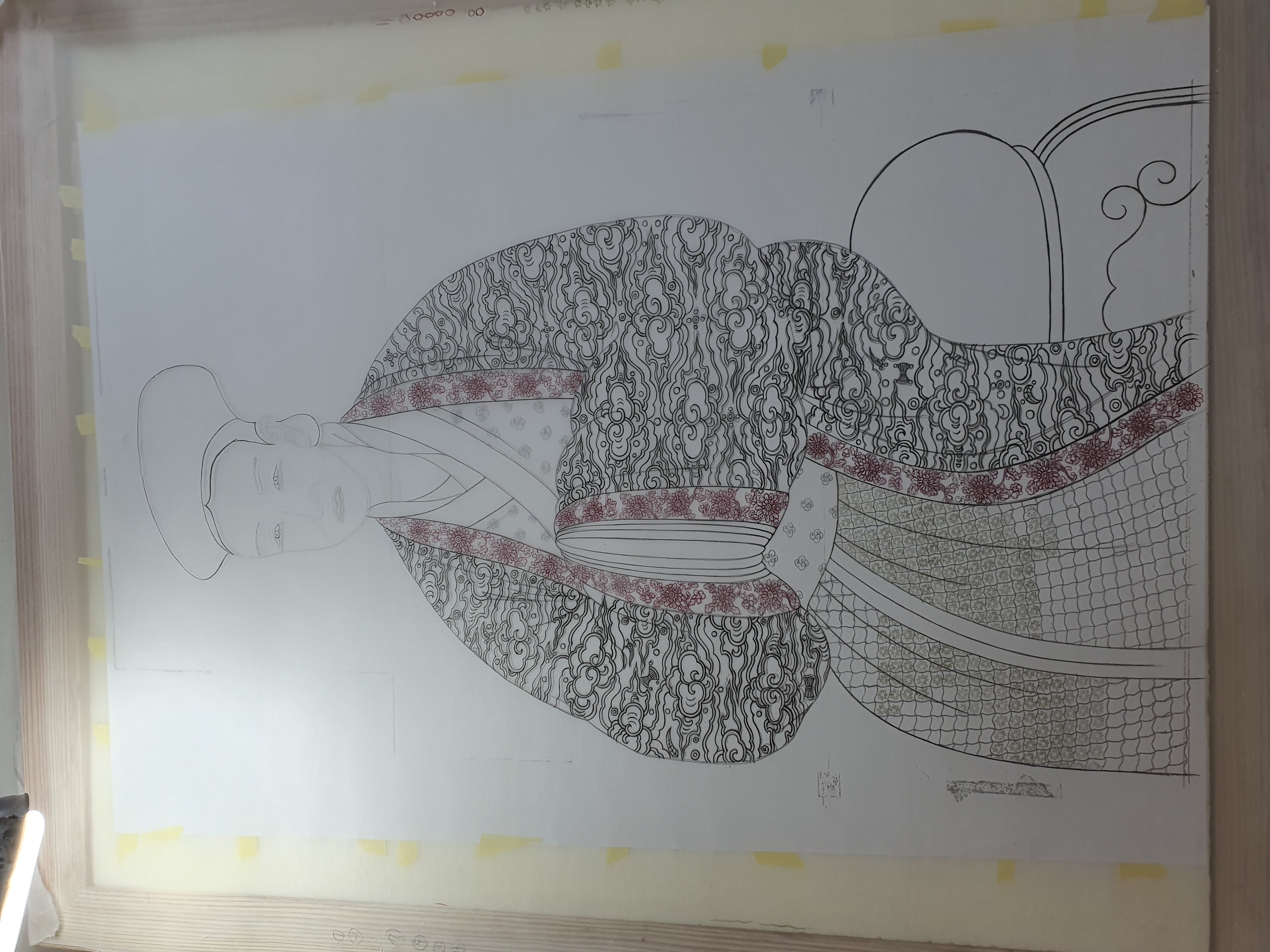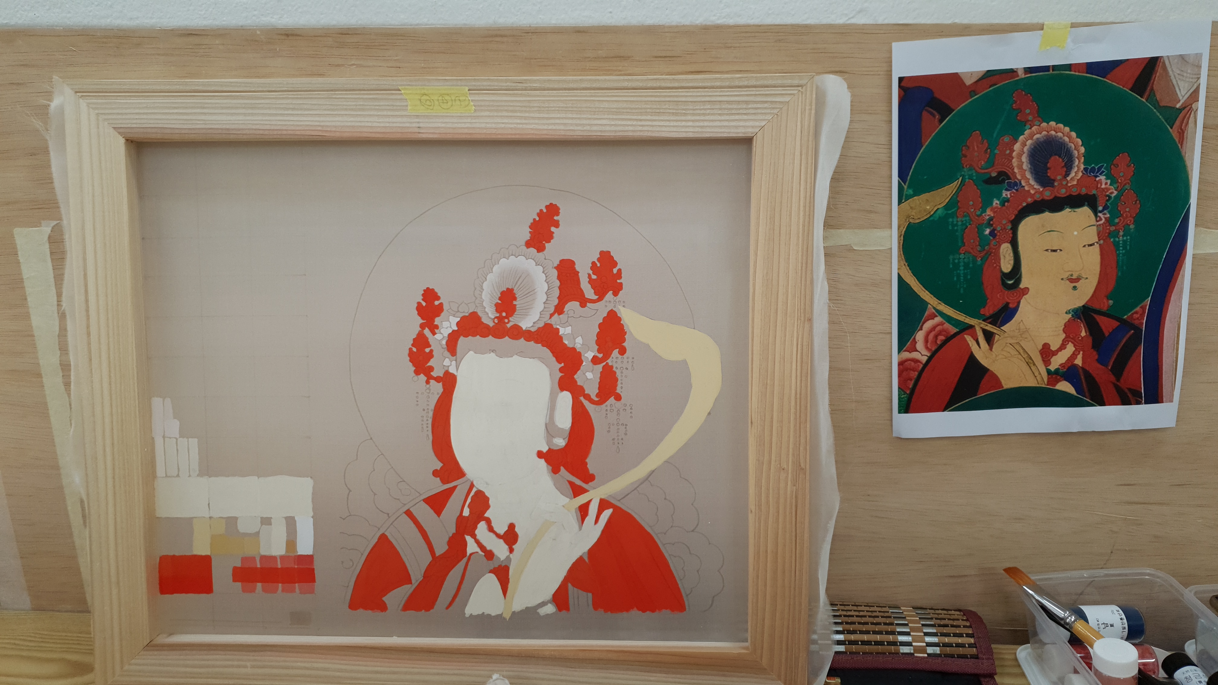 처음 그리시기 때문에 20호와 연습틀 두 개의 그림을 그립니다. 비단 그림과 석채에 익숙하다면 채색테스트 표와 본 그림 두 부분만 있으면 됩니다.