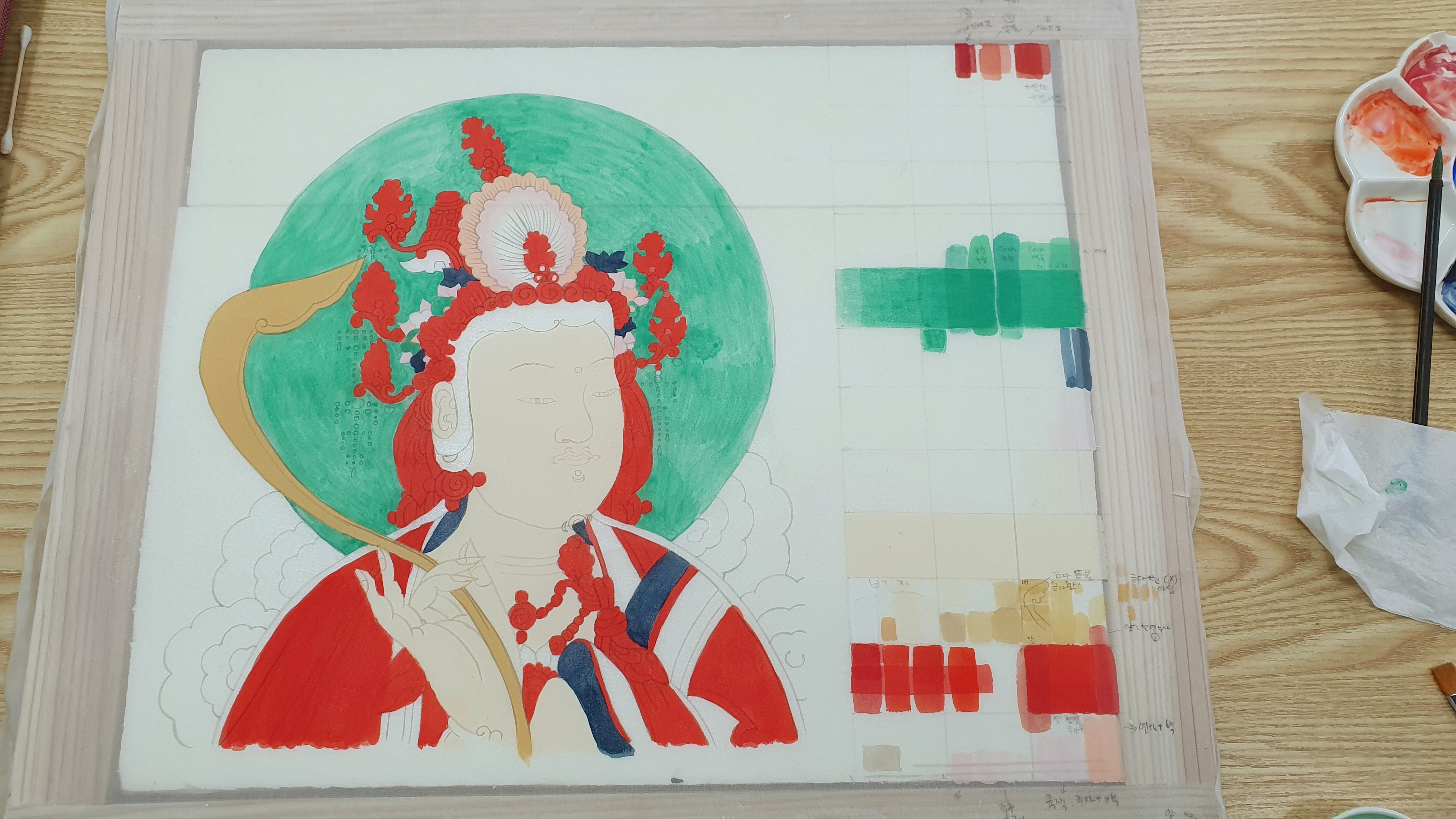 비단에 보살 그리기 첫 작품
